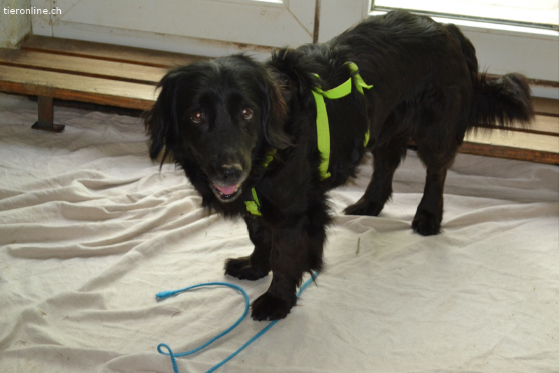 Pöty ist 35 cm hoch und wiegt ca. 10 kg. Sie wurde geschätzt auf 13 Jahre, könnte aber etwas jünger sein.