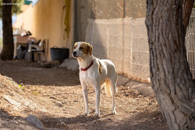 Die bezaubernde Sissi befindet sich bereits seit zwei Jahren in unserer Auffangstation in Villena. Ursprünglich wurde Sissi zusammen mit 4 weiteren Hunden aus einem alten, verfallenen Haus im Niemandsland sichergestellt. Die Hunde waren dort völlig sich selbst überlassen, ohne jegliche Hege und Pflege und ohne Außenkontakt. Für die seinerzeit noch sehr jungen Hunde eine katastrophale Situation. Drei der sichergestellten Hunde konnten mittlerweile erfolgreich vermittelt werden, und sie haben sich bei ihren neuen Familien ganz prima entwickelt. Und genau das wünschen wir uns auch so sehnlich für unsere sanfte, bildschöne Sissi!