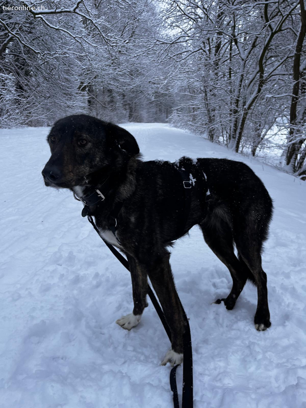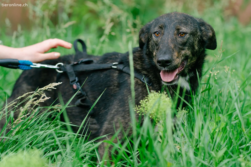Concorde ist klug und lernt schnell. In ihrer Pflegestelle hat sie sich rasch eingelebt und macht täglich Fortschritte. Sie orientiert sich sehr an ihrem Bruder, der bereits seit längerer Zeit in der Pflegestelle lebt und dort sein Zuhause gefunden hat. Deshalb wäre es schön, wenn Concorde sich in ihrem „Für immer Zuhause“ die Couch mit einem souveränen Hundekumpel teilen könnte. Straßenverkehr, viele Menschen und neue Reize verunsichern sie noch und ihr neues Zuhause sollte nicht mitten in der Stadt sein. Wir wünschen uns für Concorde ein eher ruhiges und ländliches Umfeld. Und natürlich Menschen mit Geduld, Zeit und Verständnis, die sie auf ihrem Weg begleiten und ihr die nötige Sicherheit geben. Ist die Bindung einmal gewachsen, wird sie eine treue und verlässliche Begleiterin fürs Leben sein.