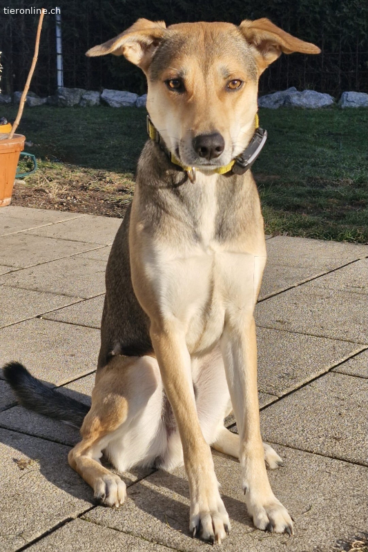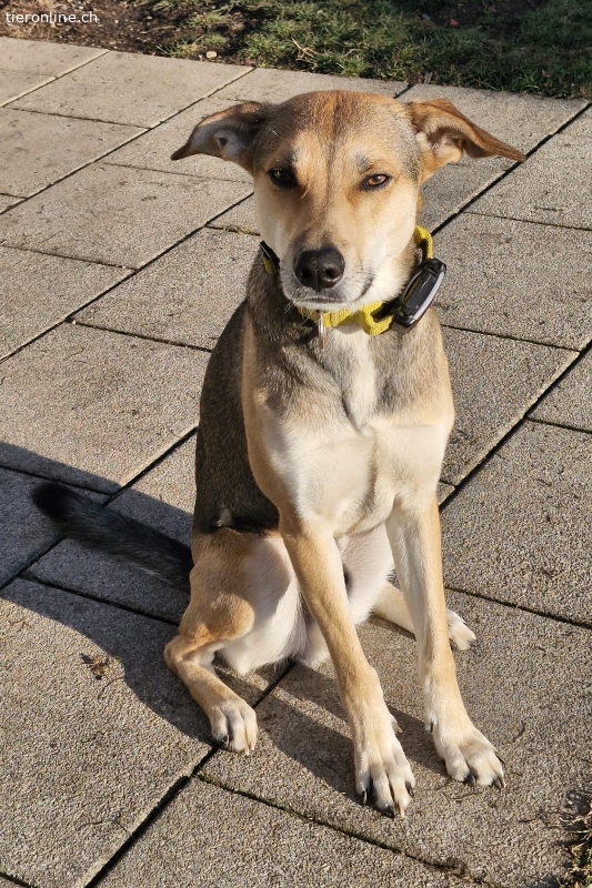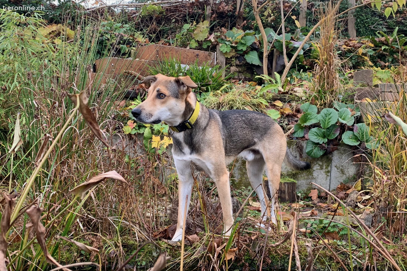 Trusky ist ein junger Rüde, der die Welt mit wachen Augen betrachtet – manchmal neugierig, manchmal noch vorsichtig. Seit Ende Dezember lebt er auf einer Pflegestelle in Brannenburg, wo er Schritt für Schritt lernt, dass das Leben auch sicher und verlässlich sein kann.