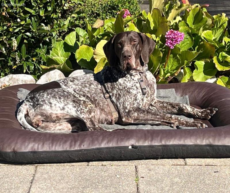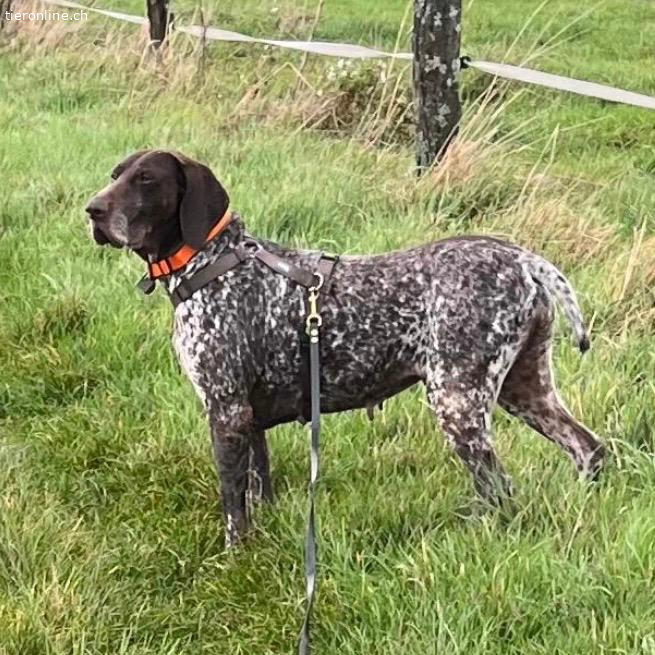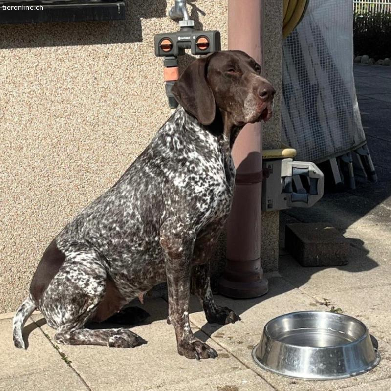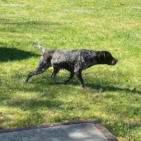 Ella ist ein Mädchen, geboren am 10.10.2020, sie ist eine reinrassige Deutsch Kurzhaar Hündin.