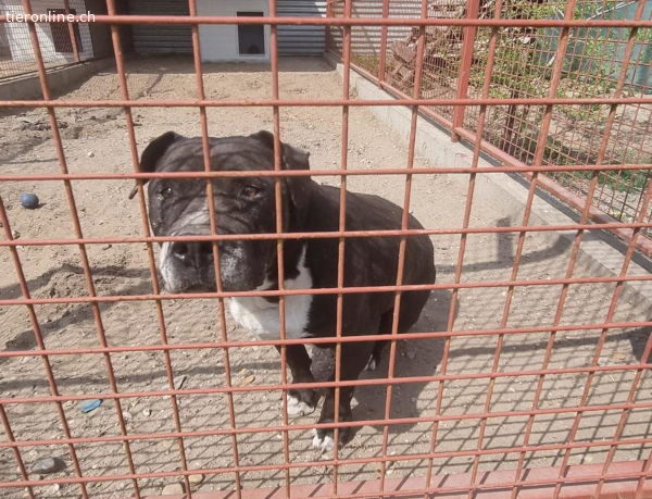 "Unser alternder Amstaff Dusty sucht seine Traumfamilie! Dusty ist seit 5 Jahren im Tierheim und ein regelmäßiger Teilnehmer an Mentoring-Tagen. Er läuft sehr schön an der Leine. Er ist nett und liebt Menschen. Ein Platz als Einzelprinz würde ihn sehr glücklich machen. Er soll nicht im Tierheim sterben."