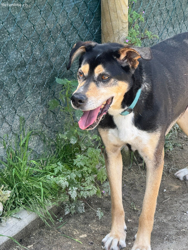 Er zeigt sich sehr glücklich draußen im Spielbereich und rennt gerne etwas, um aufgestaute Energie abzubauen. Wenn er dann zufrieden ist, kommt er gerne zu den Freiwilligen und holt sich etwas Streicheleinheiten und Liebe ab.