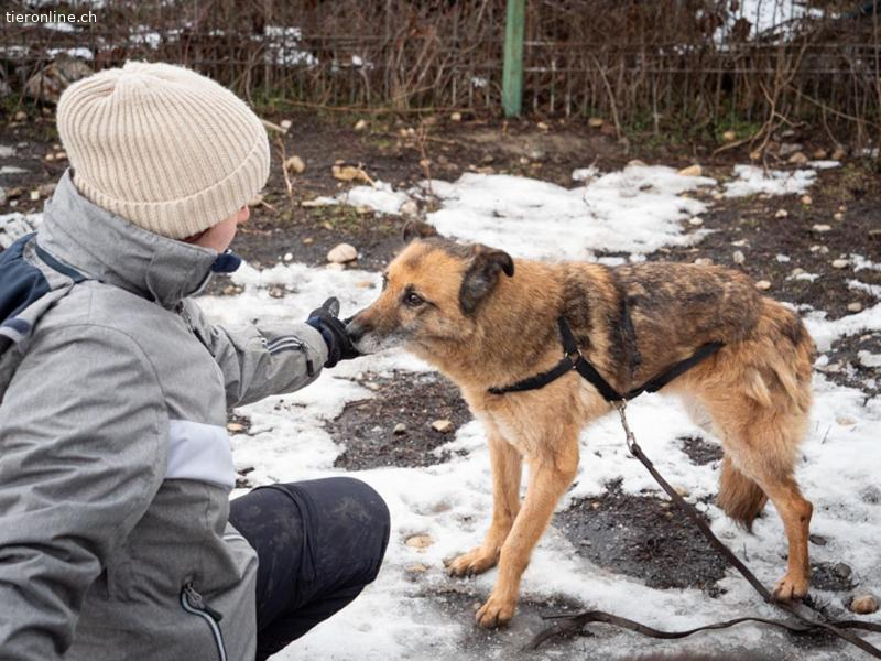 Sie kam in einen Zwinger zu einem sehr freundlichen Rüden. Seitdem hat Zoppa große Fortschritte gemacht. Sie freut sich über Menschen, wenn sie sie sieht. Sie lässt sich streicheln, allerdings noch nicht am ganzen Körper. Ein Geschirr versetzt sie noch in Panik.