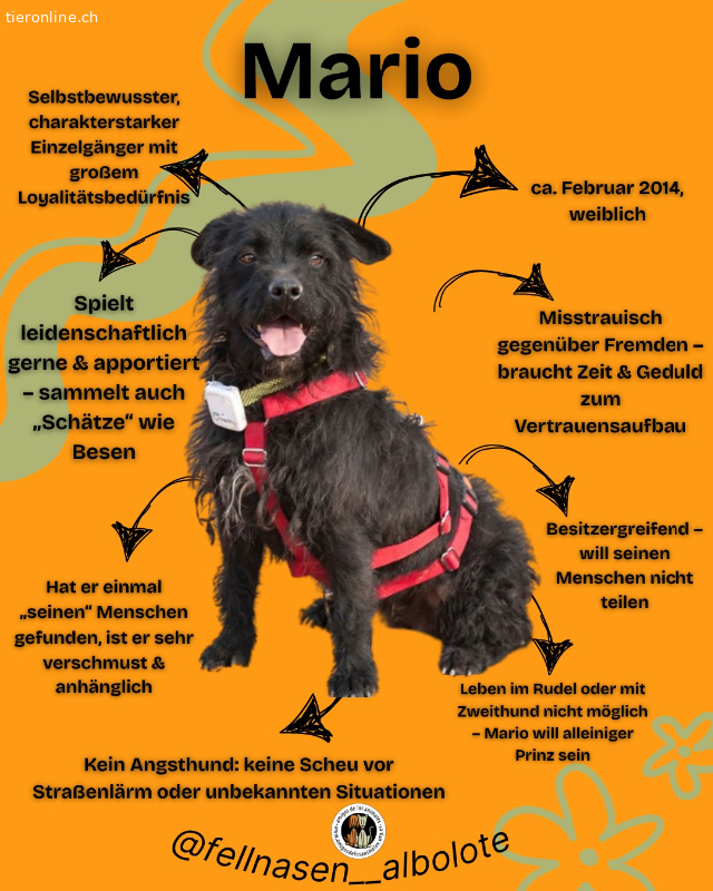 Mario ist ein sehr spezieller Hund. In all den Jahren hat er sich nicht wirklich zu seinem Vorteil entwickelt. Er ist zwar klein, aber manchmal unberechenbar. In einem Moment kann man ihn streicheln, im nächsten Moment schnappt er. Wenn sich nicht jemand findet mit einem grossen Herzen und viel Verständnis, wird er vermutlich bis zum Ende seiner Tage bei uns bleiben... Deshalb suchen wir auch eine Patenschaft für ihn.