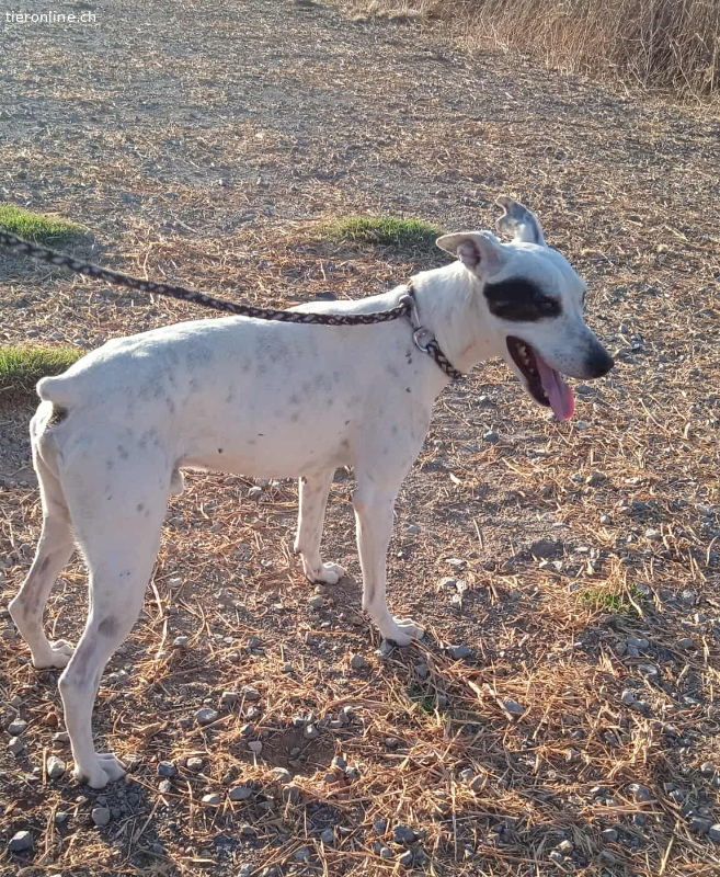 Sabina ist trotz seiner Vergangenheit ein sehr freundlicher, aufgeschlossener und aktiver Hund. Er liebt Menschen, ist sehr anhänglich, verspielt und voller Lebensfreude – ein richtiges Energiebündel! Sabina ist neugierig und kontaktfreudig. Er zeigt ein sozialverträgliches Verhalten gegenüber anderen Hunden. Derzeit lebt er mit einem älteren Mastin-Rüden in der privaten Hundepension und ist ab und zu auch mal zuhause bei der Leiterin der Hundepension, die ebenfalls drei Hunde hat.
