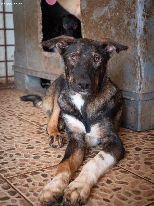 Spitfire ist eines dieser Hundekinder und zeigt sich als sehr verspielter und aktiver Hundebub. Mit seinen Geschwistern tobt er ausgelassen durch den Welpenzwinger, bei Menschen ist er noch etwas schüchtern und zurückhaltend. Aber Spitfire ist intelligent und schlau, denn er hat schon gecheckt, dass wenn man sich das Geschirr anziehen lässt und auf den Arm genommen wird, dann geht’s auf den Hundespielplatz und dort lässt es sich noch besser spielen und toben, als im kleinen Zwinger.