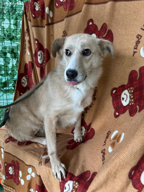 Mitten im hektischen Shelteralltag, wo Lärm, Enge und ständiger Trubel das Leben bestimmen, fällt diese bezaubernde Hündin sofort auf. Sie ist anfangs etwas schüchtern, fast wie eine kleine Lady, doch sobald sie merkt, dass ihr jemand freundlich begegnet, blüht sie auf und zeigt, wie liebenswert und sanft sie ist. Wer einmal ihren seelenvollen Blick trifft, merkt sofort: Hier steckt ein Herz voller Zuneigung, das nur darauf wartet, endlich ankommen zu dürfen. Mit anderen Hunden kommt sie problemlos zurecht. Sie fügt sich entspannt in ihre Umgebung ein, spielt oder schnuppert neugierig, ohne aufdringlich zu sein. An der Leine läuft sie schon recht gut, und man spürt, dass sie sich über jeden Schritt in die richtige Richtung freut. Alles Neue nimmt sie aufmerksam und interessiert auf, immer bereit, Vertrauen zu fassen und sich auf die Menschen einzulassen, die ihr die Sicherheit geben, nach der sie sich sehnt.