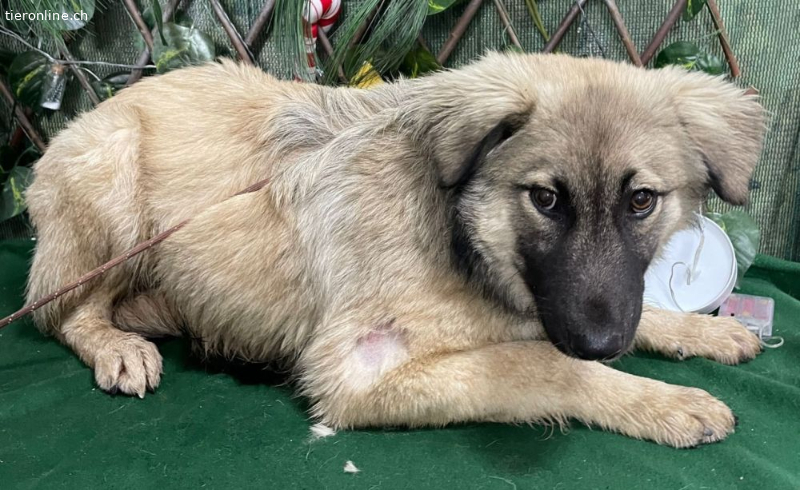 Unser Diesel ist ein bildhübscher Mischlingsrüde mit hellem, etwas längerem Fell und sehr ausdrucksvollen Augen. Wer ihm diesen Namen gegeben hat, können wir nicht sagen, aber es steht ja jedem Adoptanten frei, einen passenden Namen zu wählen.