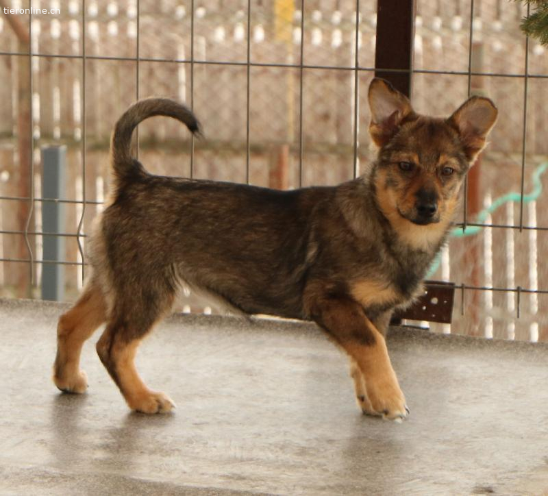 Mit den Hunden in ihrer Gruppe versteht sie sich sehr gut, manchmal möchte sie sogar den Ton angeben. Da wir ihre Eltern nicht kennen, können wir über ihre Grösse nur spekulieren; wir denken, dass sie eher eine kleine Hündin sein wird.