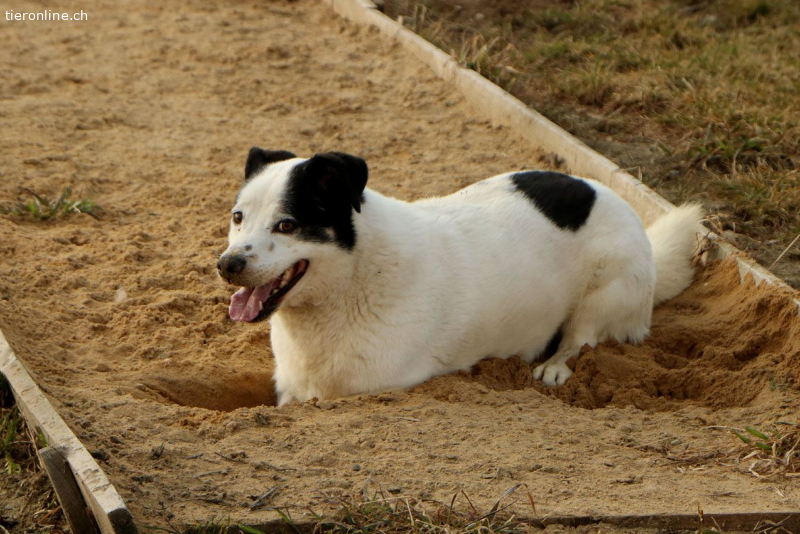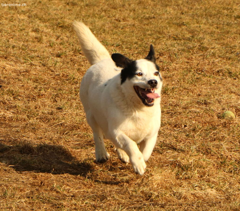 Mit den Hunden in seiner Gruppe hat er sich von Anfang an bestens verstanden. Bei den Ausflügen auf die grosse Rennwiese ist er eifrig dabei, spielt, rennt und freut sich seines neuen Lebens. Dabei behält er auch die Pfleger stets im Blick. Zwar kommt er nicht ständig, um sich Streicheleinheiten abzuholen, doch er ist neugierig, interessiert und beobachtet alles aufmerksam aus der zweiten Reihe.
