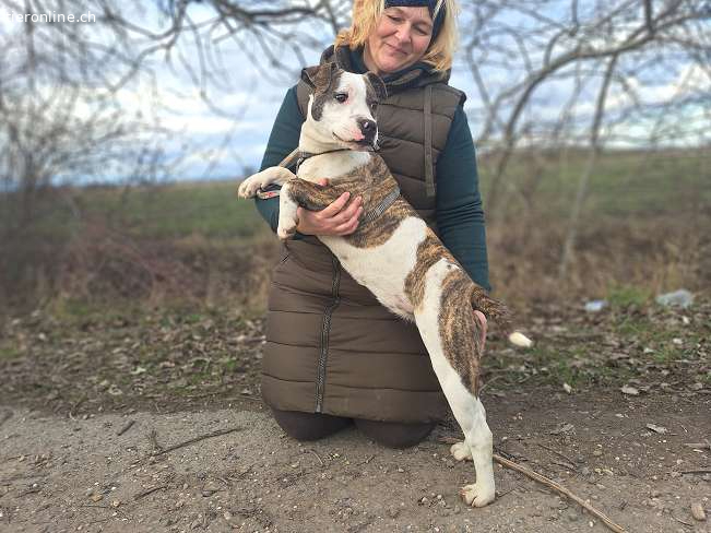 Aufgrund ihres vermuteten Rassemixes darf Loretta leider nicht nach Deutschland, sondern nur in bestimmte Kantone der Schweiz (oder in andere Länder ohne Einschränkung, wie z.B. Ungarn) vermittelt werden.