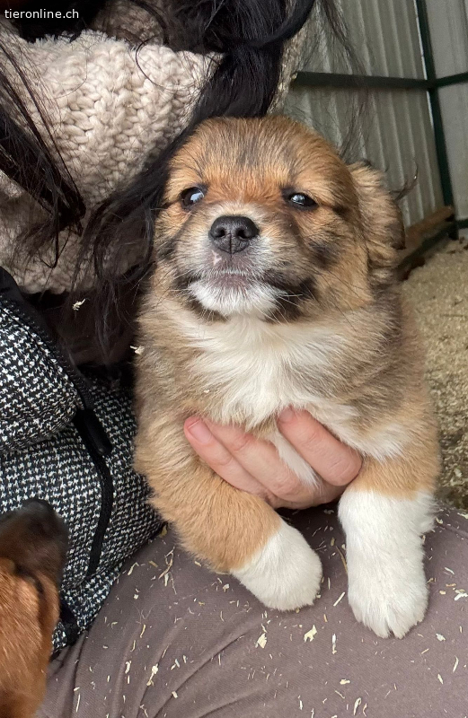 Nougat ist ein kleines Hundemädchen mit kurzen Beinchen und einem langen, niedlichen Körper. Ausgewachsen wird sie klein bleiben, etwa 6–7 kg schwer. Sie ist süss, freundlich und genießt sanfte Aufmerksamkeit sehr.
