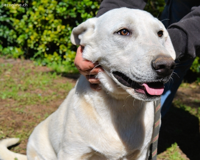 Er lebt aktuell in einer gemischten Box mit Rüden und Hündinnen und zeigt sich dort freundlich, souverän und sozial. Doch draußen, in der unbekannten Welt, ist plötzlich vieles nicht mehr so leicht. Neue Situationen verunsichern ihn. Er weiß nicht, was er tun soll, schaut dann hilfesuchend nach oben – als würde er fragen: „Sag du mir, wie das geht.“