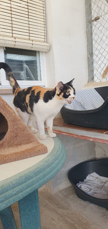 Mako ist eine liebevolle Katze, wenn auch etwas schüchtern. Sie muss sich erst sicher fühlen, bevor sie von sich aus auf einen zukommt. Aber wenn sie das tut, lässt sie sich streicheln und genießt die Zärtlichkeiten sehr. Mako ist eine Katze, die das Freie liebt. Im Tierheim verbringt sie den Tag damit, sich im Innenhof des Hauses zu sonnen, und wir sehen sie selten drinnen. Eines ihrer Lieblingshobbys ist es, auf die Planen zu klettern, die wir zur Beschattung auf dem Dach des Katzenhofs angebracht haben, und dort die Sonne und die frische Luft zu genießen.
