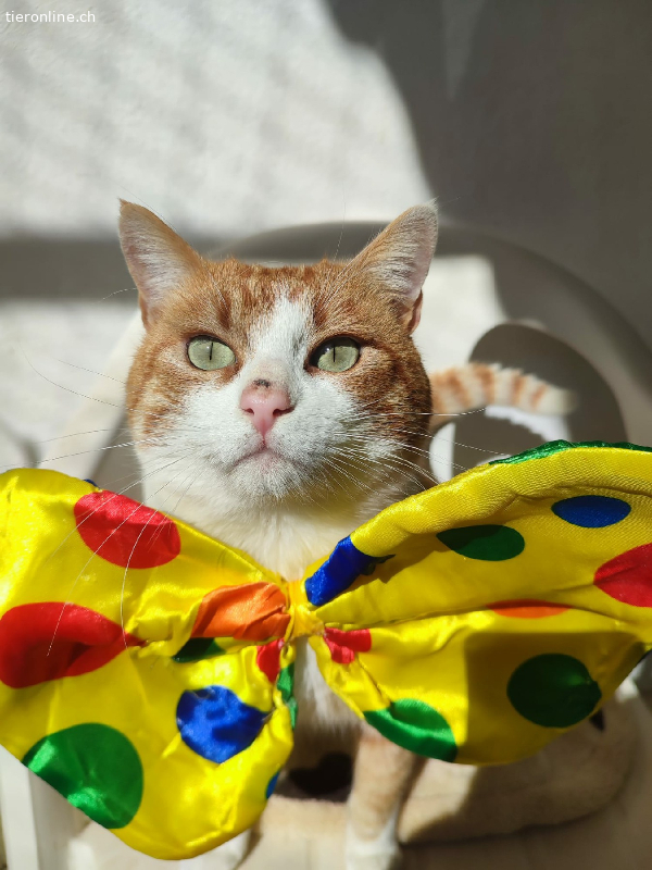 Leo lebt derzeit mit einer anderen Katze zusammen, mit der er sich gut versteht. Wir wissen nicht, was er von Hunden und Kindern hält, aber wir können es versuchen.