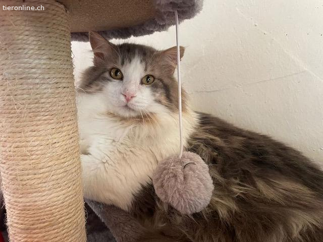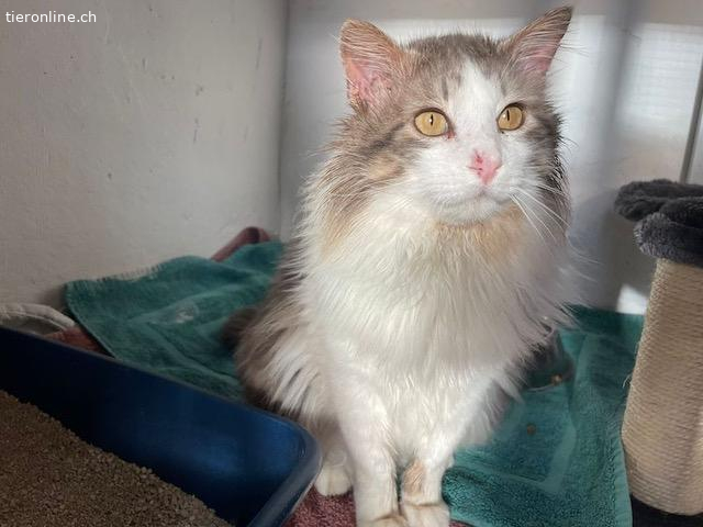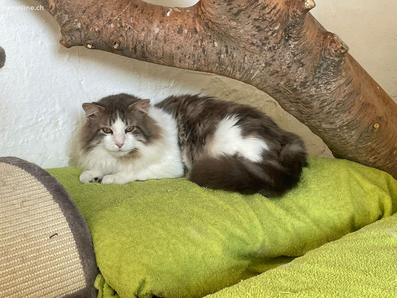 Der hübsche Langhaar Kater Momo lebte im Aussenbereich eines Hotels. Nun ist das ganze Areal für längere Zeit wegen Renovierungsarbeiten geschlossen und Momo musste eine andere Unterkunft suchen. Tierschützer brachen ihn in die Auffangstation.