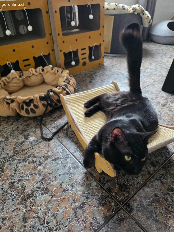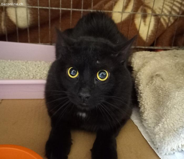 Optisch ist er ein echter Blickfang: ein kleiner Panther im Mini-Format, mit glänzend schwarzem Fell und leuchtend gelben Augen, die sofort ins Herz gehen.
